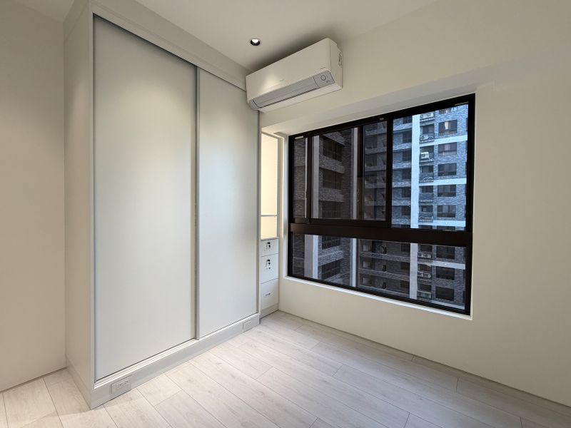 這是位於桃園青埔兩房新成屋裝修案,因為建商已做好廚具、衛浴、木地板,因此這次裝修重點便落在基礎的天花板、燈具、油漆、收納櫃體的需求。